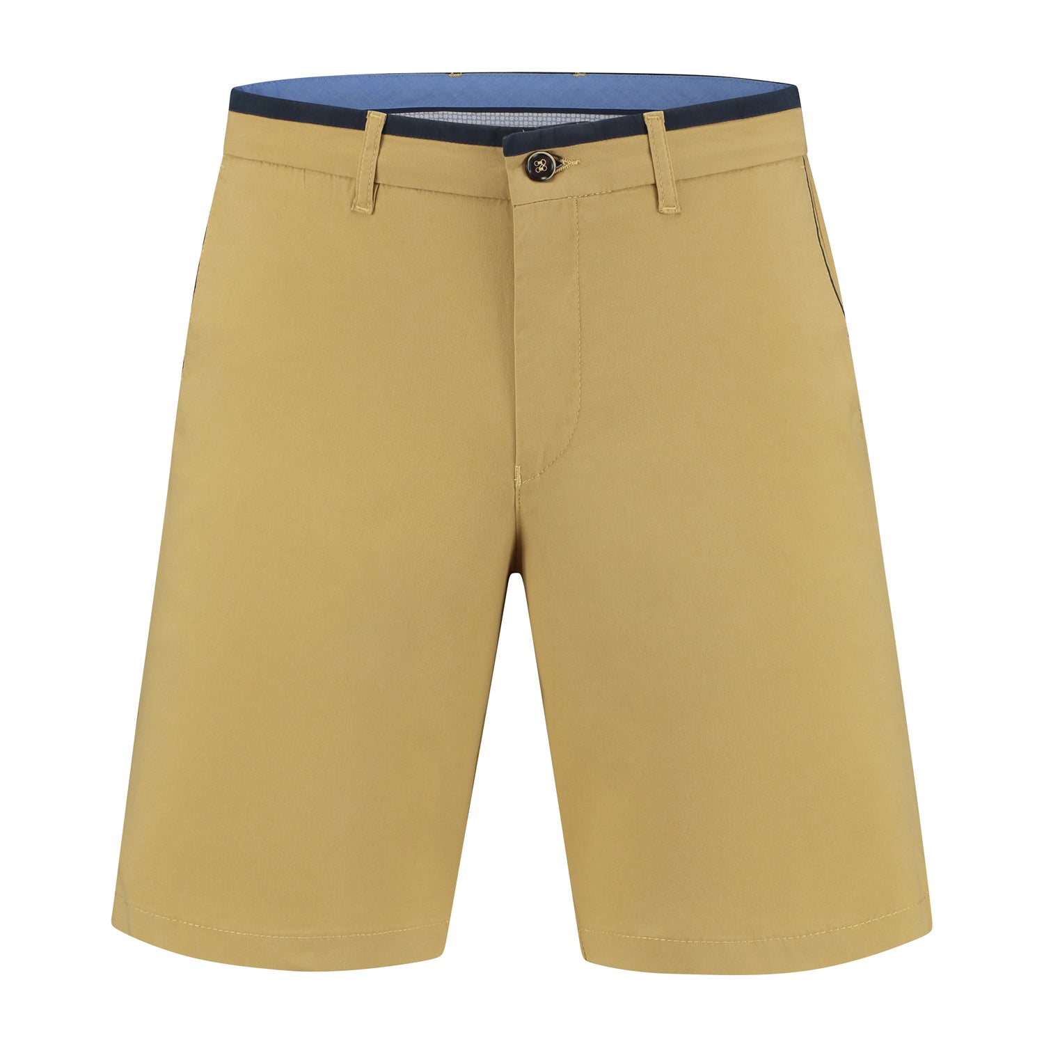 Je ziet jezelf binnenkort kiezen voor een korte chino die moeiteloos meedraait tussen casual en smart. Strak afgewerkt, gemaakt van katoen met elastaan en uitgevoerd in oker. Ideaal te stylen naast items uit heren pakken en een heren kostuum voor een moderne, nette basis.
