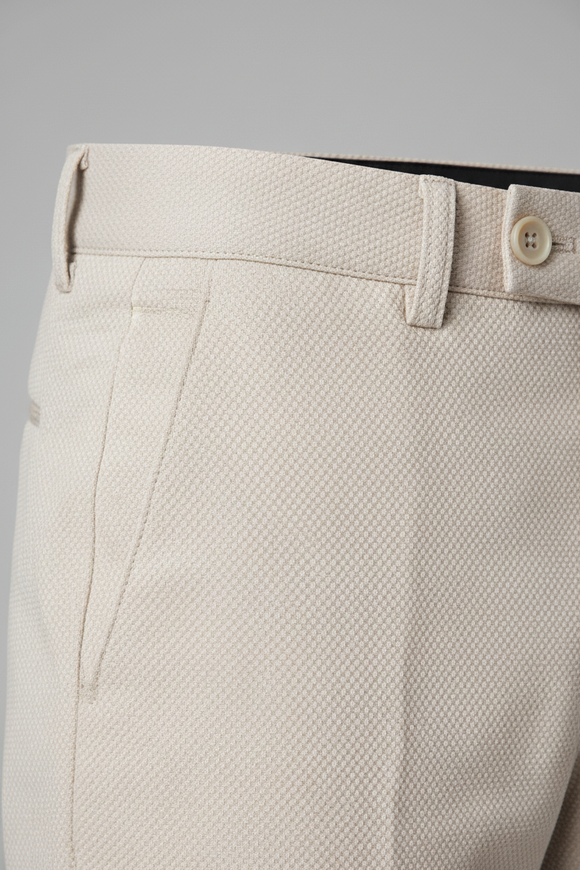 De Pantalon stretch pique zand van GENTS is een lange broek met modern fit en een comfortabele stretchstof die daglang draagcomfort en ademend gemak biedt, ideaal voor lente en zomer. Met een samenstelling van 48,4% nylon, 13,5% viscose, 31,6% polyester en 6,5% spandex, een knoopsluiting en Easycare biedt hij veerkracht, kreukbestendigheid en onderhoudsgemak voor kantoor, zakelijke evenementen en alledaags gebruik.