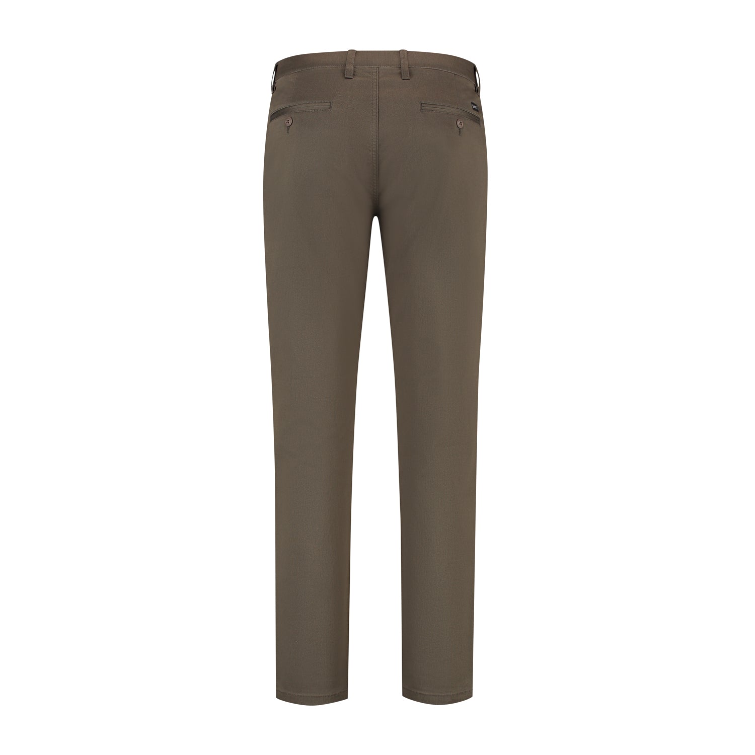 Met ons aanbod heren broeken kun je eindeloos veel combinaties maken. Kies je voor een casual chino dan kies je voor een tijdloze en trendy uitstraling. Een van de belangrijkste voordelen is dat deze broek gemaakt is van een aangenaam zachte stof voor optimaal draagcomfort. Dankzij de hoogwaardige katoen-stretch kwaliteit heeft de broek een ademende werking. Ideaal voor de warmere dagen wanneer je toch representatief en stijlvol voor de dag moet komen. De slijtvaste katoenstof zorgt voor langer draagplezier. Herkenbare details van dit model broek zijn de twee steekzakken aan de voorzijde en de paspelzakken aan de achterkant.