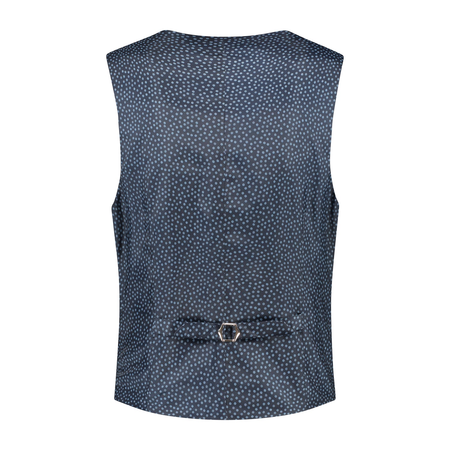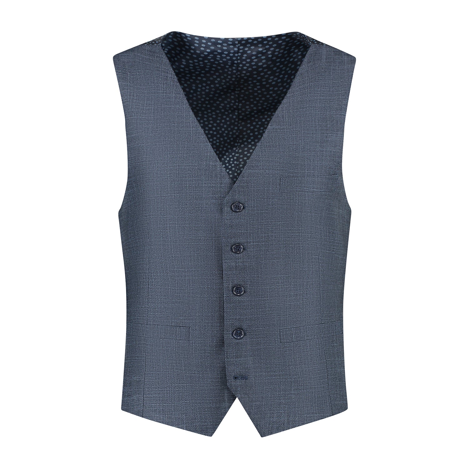 Gilet birdseye structuur blauw biedt een tijdloze elegante uitstraling met een subtiel birdseye dessin en is ideaal voor formele gelegenheden en smart-casual looks. De stretchstof (polyester viscose elastaan), de slim-fit pasvorm en functionele zakken geven comfort en praktische bruikbaarheid, terwijl Easycare zorgt voor kreukvrij onderhoud zodat je look er altijd verzorgd uitziet.