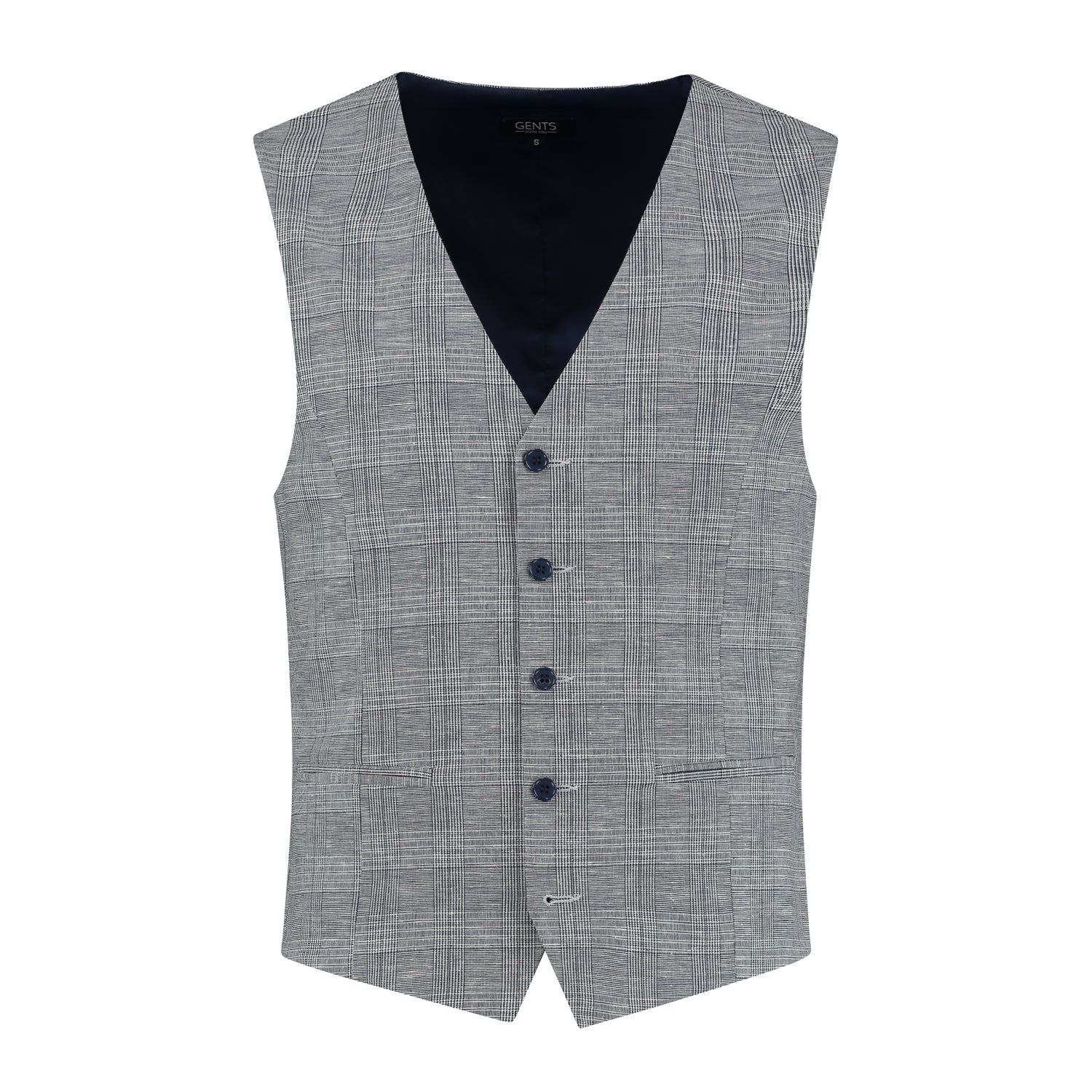 De Gilet blokruit blauw heeft een eigentijdse modern fit, waardoor het aansluitend valt zonder in te boeten op comfort. Met een subtiele blokruit en tijdloze blauwe kleur, is deze gilet een veelzijdige keuze die moeiteloos te combineren is met verschillende outfits. De knoopsluiting en de nette afwerking geven het een verfijnde uitstraling.