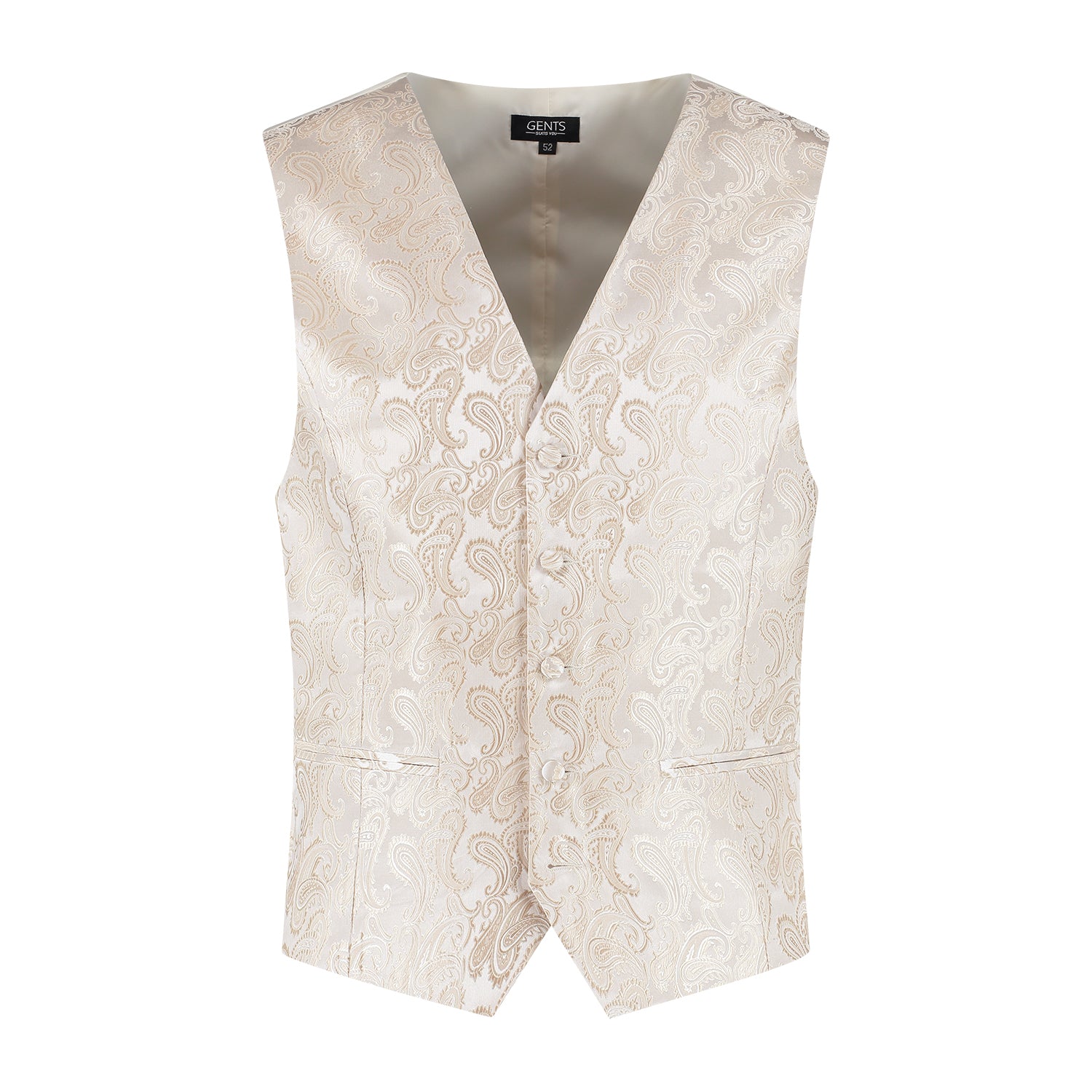 Het Gilet Paisley Champagnebeige van GENTS heeft knopen en een verstelbare achterkant, is gemaakt van 100% polyester en voorzien van Easycare voor kreukbestendigheid en gemakkelijke verzorging. De champagnebeige tint met subtiel paisley-dessin geeft een elegante, tijdloze look die ideaal is als los gilet bij formele zakelijke outfits of tijdens voorjaar en zomer, met een moderne pasvorm die moeiteloos combineert met een overhemd of shirt.
