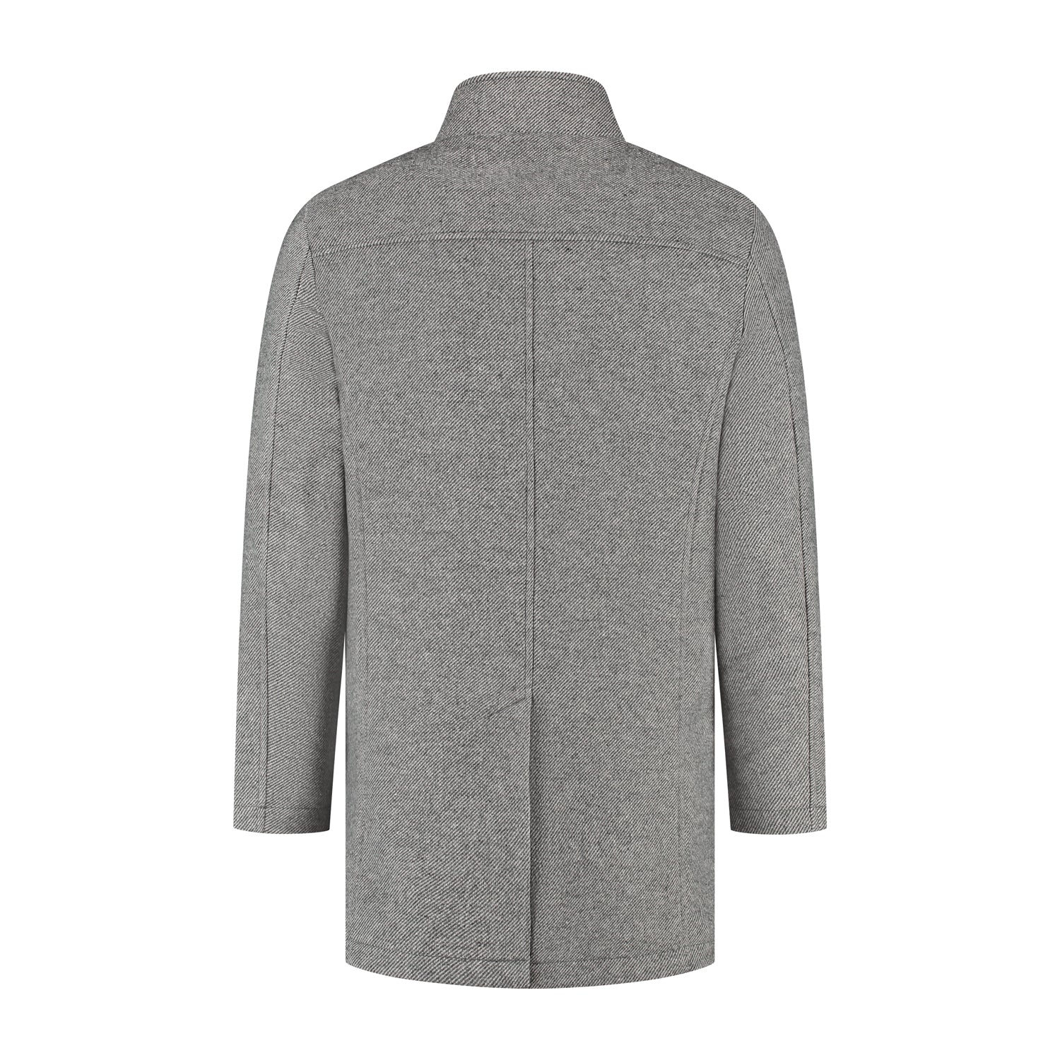 Deze stijlvolle grijze jas met opstaande kraag combineert moderne elegantie met praktisch comfort. De verfijnde visgraatstructuur geeft de jas een luxe uitstraling, terwijl de afneembare binnenvoering met ritssluiting zorgt voor extra warmte op koude dagen. De jas is voorzien van een comfortabele pasvorm en een nette afwerking met zwarte knopen.
