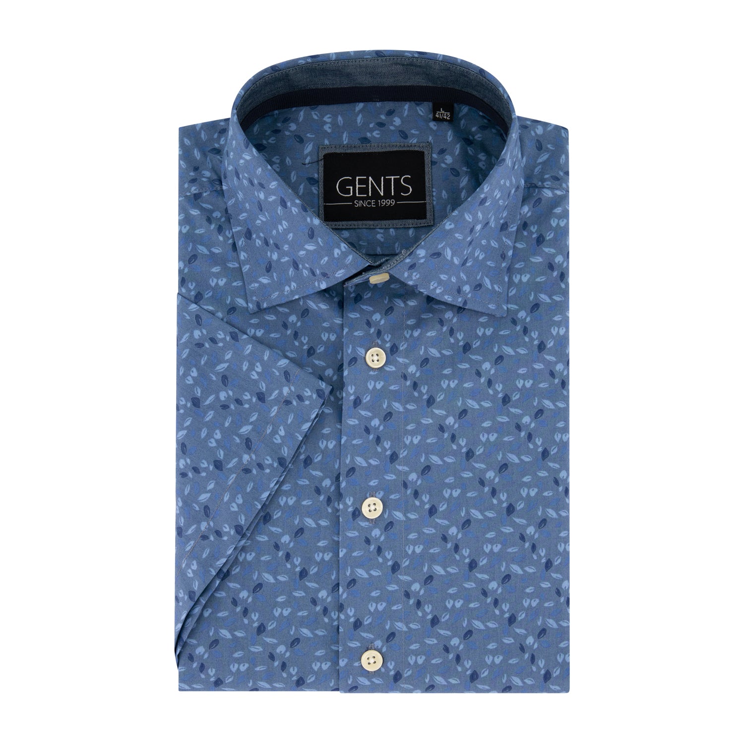 Gents korte mouw bladprint blauw