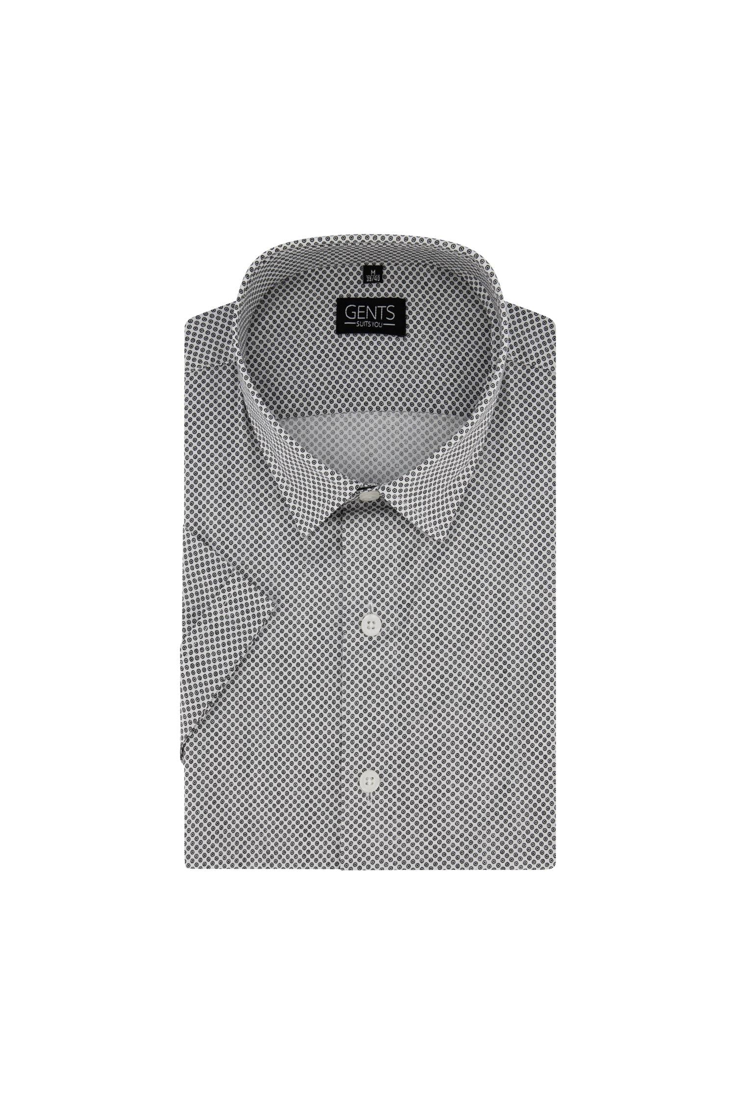 Korte mouw overhemd in witgrijs print met moderne pasvorm en ademend katoen biedt comfort en stijl voor dagelijks draagcomfort in lente en zomer. De klassieke kraag met knoopsluiting geeft een tijdloze uitstraling en maakt dit overhemd veelzijdig voor werk, casual dagen en speciale gelegenheden.