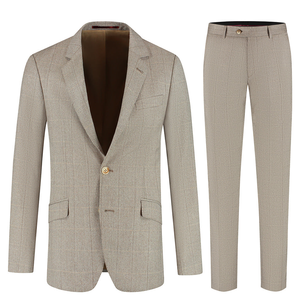 Maak jouw colbert compleet met een bijpassende pantalon en een stijlvol gilet voor een chique driedelig ensemble. Een aantal pantalons in onze collectie zijn uitgerust met een sterke elastische band voor een aansluitende pasvorm. De pantalons zonder elastische band hebben al een perfecte fit, waardoor de elastische band niet nodig is. Elke pantalon is voorzien van twee steekzakken en twee achterzakken die eenvoudig met behulp van twee knopen worden gesloten. Om de kwaliteit van de stof te behouden is het belangrijk om de herenpakken niet te wassen in de wasmachine. Was het herenpak zorgvuldig met de handwas of laat het pak uithangen voor een fris gevoel.