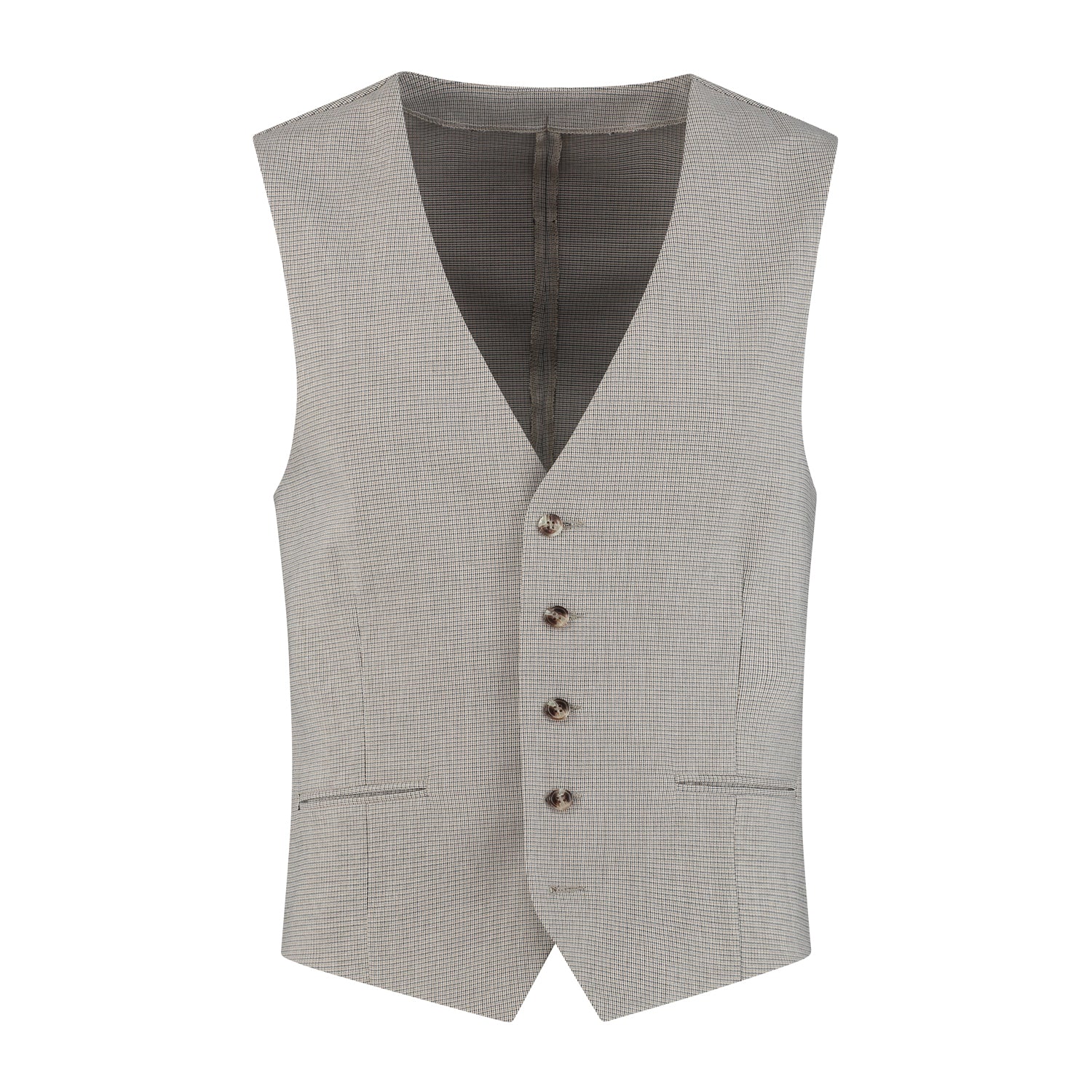 Met het Gilet miniruit zand til je jouw outfit naar een hoger niveau. Dit stijlvolle gilet in een subtiele beige kleur is perfect voor elke gelegenheid. Dankzij zijn perfecte pasvorm en verfijnde structuur voldoet het aan al jouw verwachtingen op het gebied van heren pakken en heren kostuums.