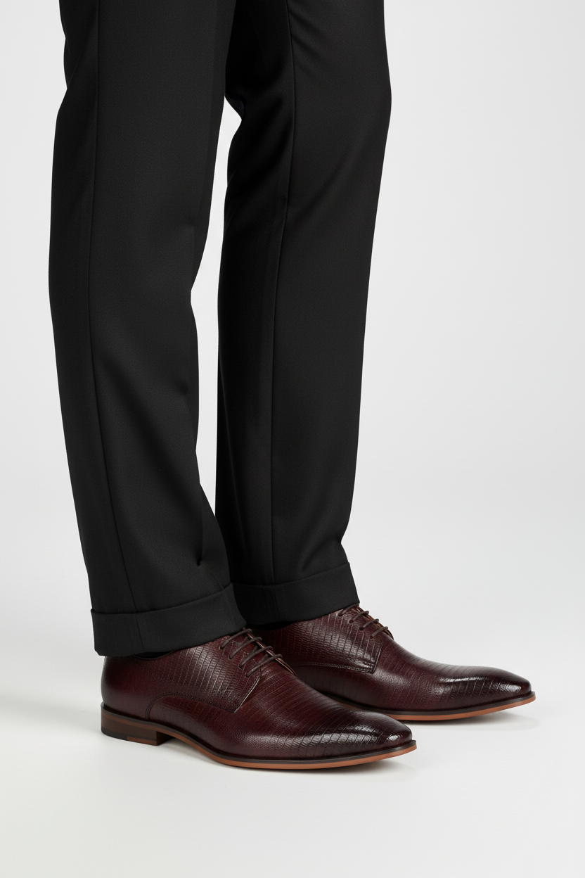 Roodbruine veterschoenen van fijn structuurleer met ademend leer bieden daglang comfort en een elegante, zakelijke uitstraling. Dankzij de moderne pasvorm en de duurzaamheid van het leer zijn ze ideaal voor kantoor, netwerkevenementen en feestsituaties en combineren ze moeiteloos met een donkerblauw kostuum of jeans.