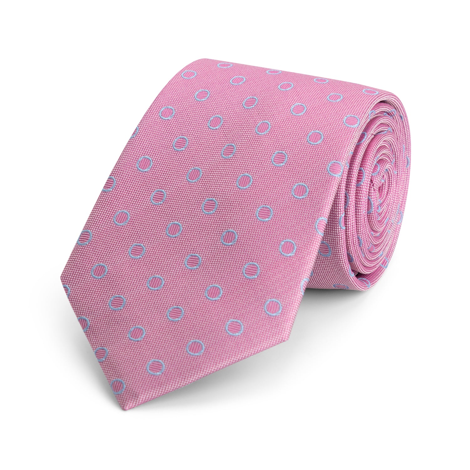 Stropdas zijde print cirkels roze-blauw