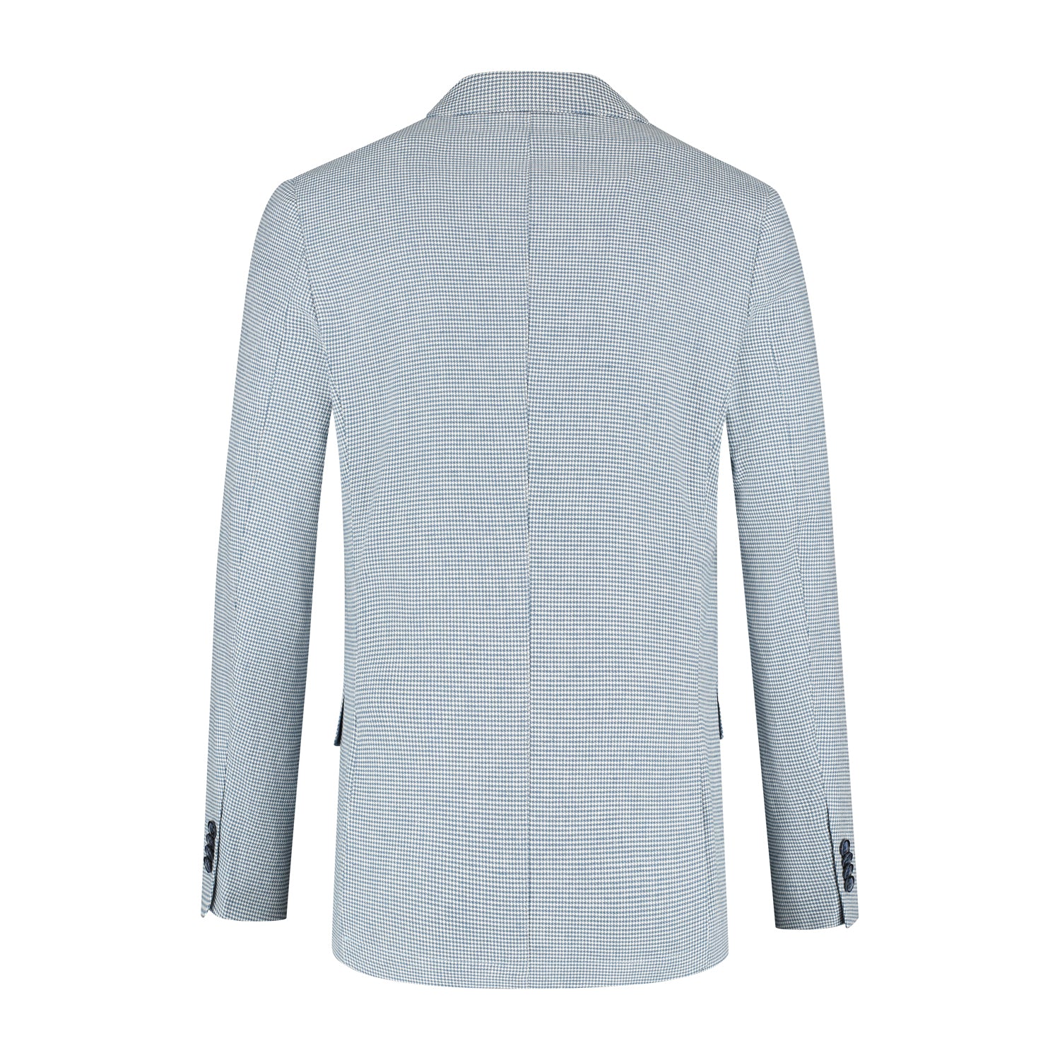 Het Pak pied-de-poule linnen-katoen blauw is een tweedelig slim-fit pak van 55% katoen, 44% linnen en 1% elastaan met een ademende stretch en een subtiel pied-de-poule patroon in diepblauw. Ideaal voor kantoor, bruiloften en andere formele gelegenheden biedt dit pak comfort en bewegingsvrijheid zonder in te leveren op een moderne, strakke uitstraling.