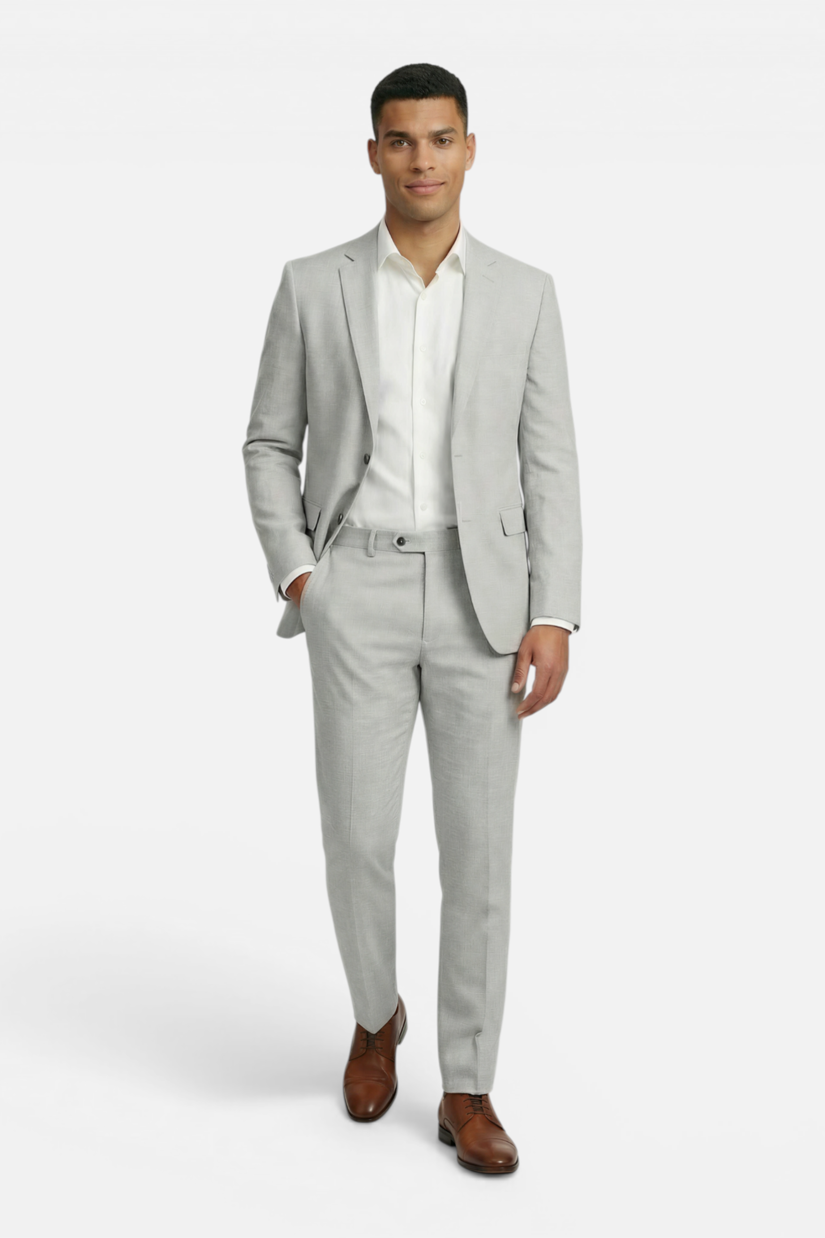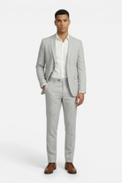Het pak linnenblend zilvergrijs van GENTS is een 2-delig pak met een moderne pasvorm, vervaardigd uit 83% Polyester, 9% Viscose, 5% Linnen en 3% Spandex, waardoor het ademend en licht is en kreukbestendig en onderhoudsvriendelijk blijft dankzij Easycare. Dit lente- en zomerspak is ideaal voor zakelijke afspraken en nette events; combineer het met een overhemd en nette schoenen voor een stijlvolle, comfortabele look die lang fris blijft.