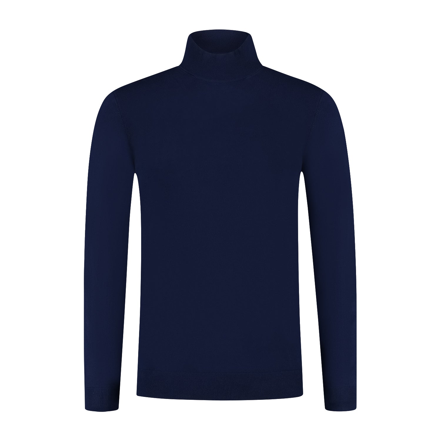 Je opent de kast en kiest een strak gebreide turtle in diep Blauw. De hoge col en clean afwerking zetten een minimalistische toon die naadloos aansluit bij heren pakken en elk heren kostuum. Gemaakt van een onderhoudsv
