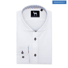 Binnenkort hangt Blumfontain uni wit tape in je kast: een modern fit overhemd in wit katoen. Strak afgewerkt met zichtbare knoopsluiting, klassieke kraag en subtiele contrast-tape met microprint aan kraagstand en manchetten. Een tijdloze basic binnen de wereld van heren pakken en heren kostuum.