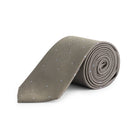 Sie wählen eine braune Krawatte aus reiner Seide, dicht gewebt mit einem dezenten Mikro-Punktmuster. Die klassische, spitz zulaufende Form und die saubere Verarbeitung machen sie zur perfekten Ergänzung für Anzüge jeder Art.