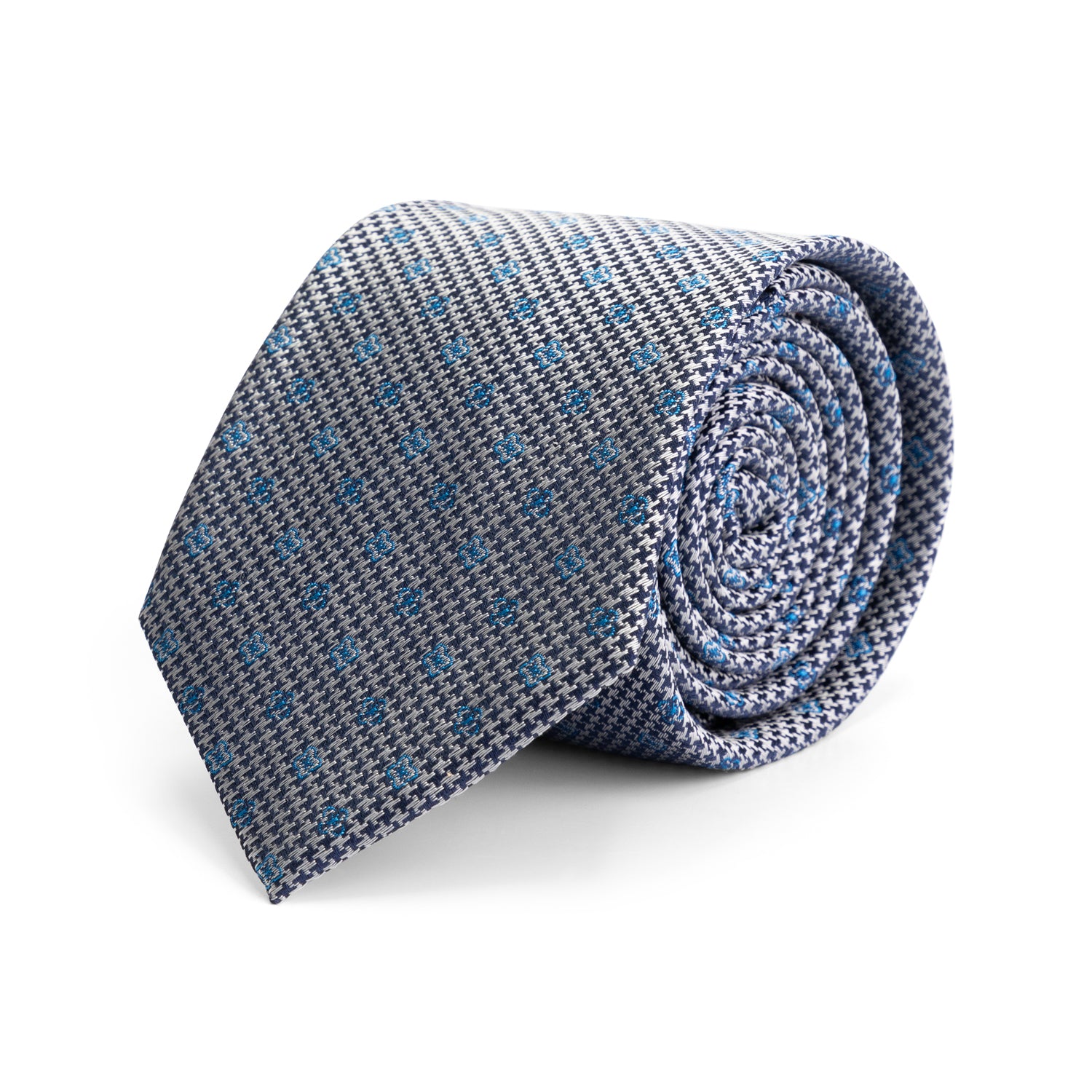 Diese Krawatte wird bald neben Ihren Herrenanzügen hängen: Reine Seide, dicht jacquardgewebt mit schwarzgrauem Grundton und einem dezenten Mikromuster mit blauen Akzenten. Die klassische Spitze und die saubere Verarbeitung sorgen für einen zeitlosen, formellen Look.