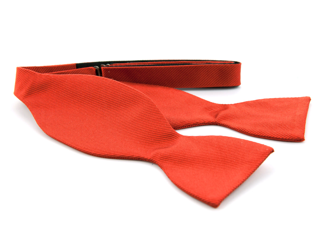 Setzen Sie auf zeitlose Eleganz mit diesem Bindeknoten aus reiner Seide. Der Ziegelrotton und die dezente Köperstruktur ergeben eine satte, tiefe Farbe. Der Bindeknoten verfügt über einen verstellbaren Riemen und einen Metallschieber und ist sauber verarbeitet für einen sicheren Halt. Er ist die ideale Ergänzung für Herrenanzüge und Kostüme.