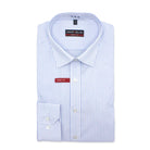 Je kijkt naar een strak gestreept shirt dat straks naadloos past bij heren pakken en elk heren kostuum. Gemaakt van katoen met een nette afwerking: klassieke kraag, doorlopende knoopsluiting en lange mouwen met manchetten. Een heldere basis voor zakelijke sets.