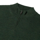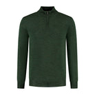 Je pakt een half zip met opstaande ribkraag, nette halve rits en fijngebreide structuur. In diep Groen en clean afgewerkt met ribboorden. De ingetogen, effen melange sluit qua stijl aan bij heren pakken en heren kostuum.
