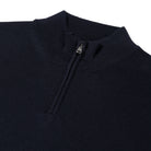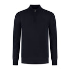 Morgen hangt deze half zip klaar naast je colbert. De effen blauwe knit met staande kraag en halve rits sluit naadloos aan op business casual, heren pakken en heren kostuum. Fijngebreid en clean afgewerkt voor een tijdloze look.