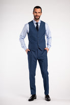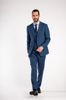 Met dit wolblend heren kostuum zet je straks een scherpe, moderne set neer. Royalblue geeft een krachtige, tijdloze indruk. Je krijgt een single-breasted combinatie van colbert, gilet en pantalon die naadloos aansluit bij hoogwaardige heren pakken.