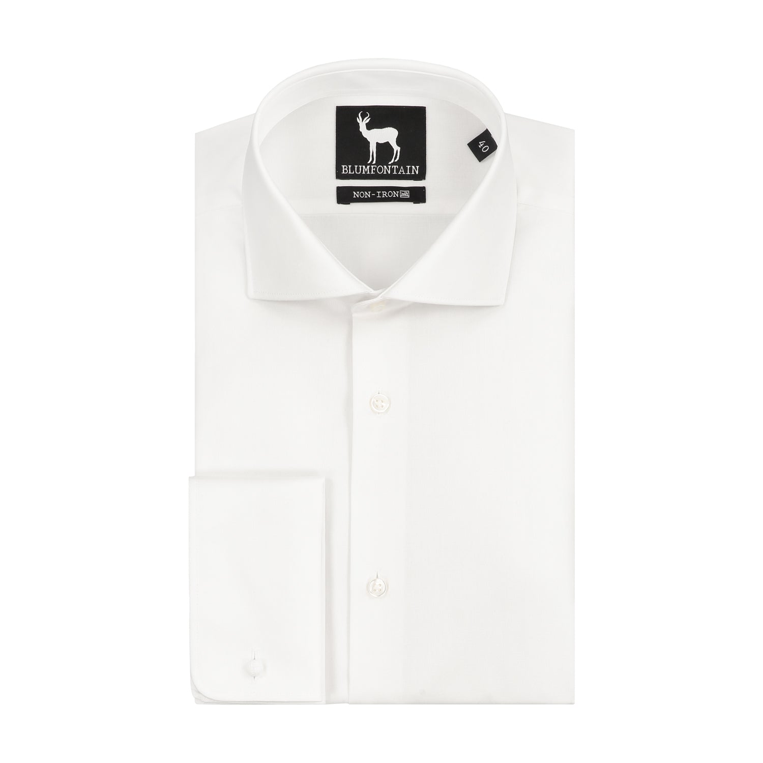 Je ziet het al voor je: een strak wit overhemd dat moeiteloos onder heren pakken en elk heren kostuum past. Dit Blumfontain model is clean en tijdloos, met dubbele manchetten die klaar zijn voor manchetknopen en een moderne snit die je look scherp houdt.