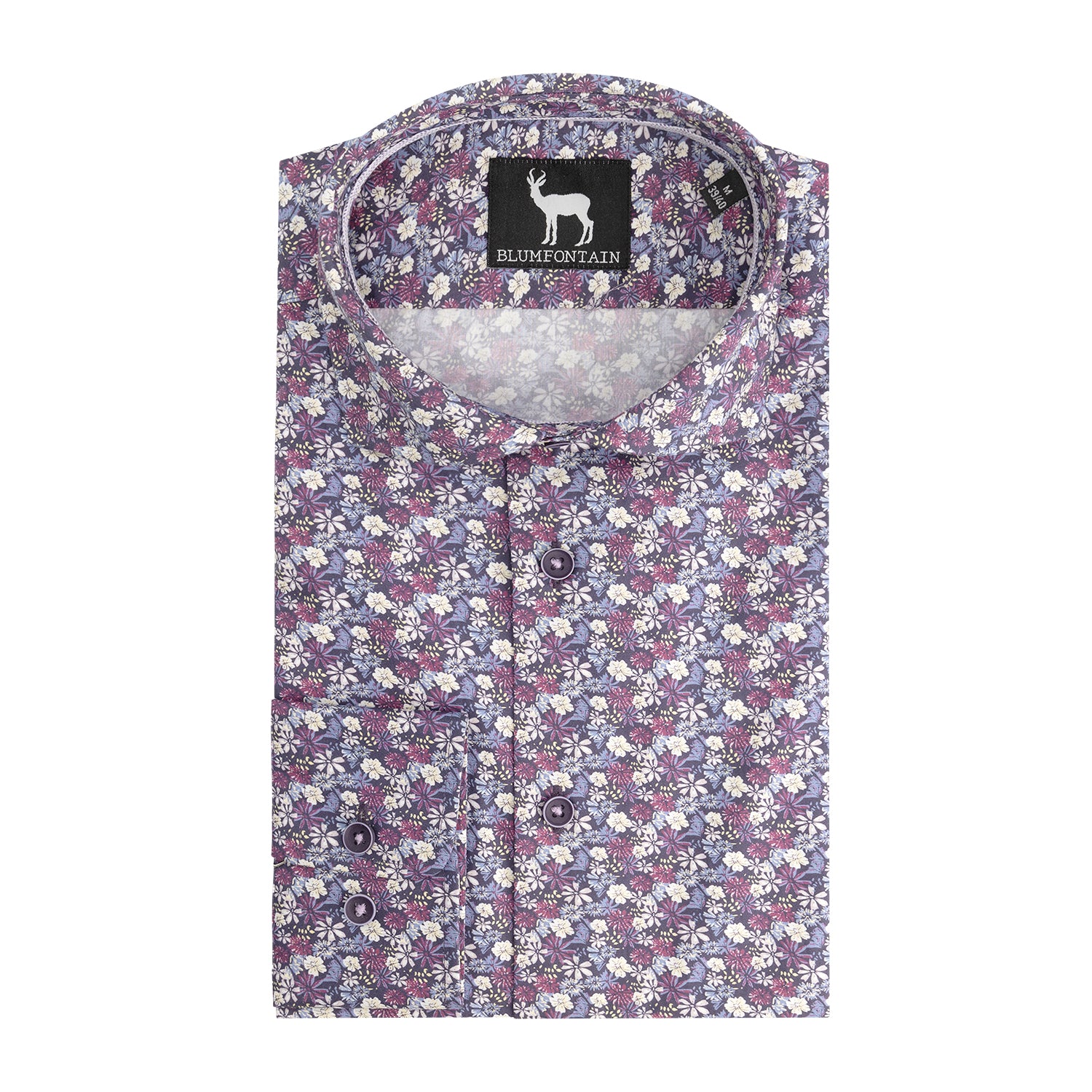 Dit hemd is voorzien van een klassieke kraag en lange mouwen, waardoor het geschikt is voor zowel formele als informele gelegenheden. Het rijke, paarse bloemendessin biedt een moderne draai aan traditionele mannenmode. Hiermee huppel je moeiteloos van een dag op kantoor naar een avond uit met vrienden.