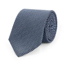 Deze blauwe zijden stropdas met subtiel stippelmotief is een elegante toevoeging aan elke outfit. De verfijnde structuur en lichte glans van de zijde zorgen voor een luxe uitstraling, terwijl het tijdloze patroon moeiteloos combineert met zowel een klassiek wit overhemd als moderne tinten.