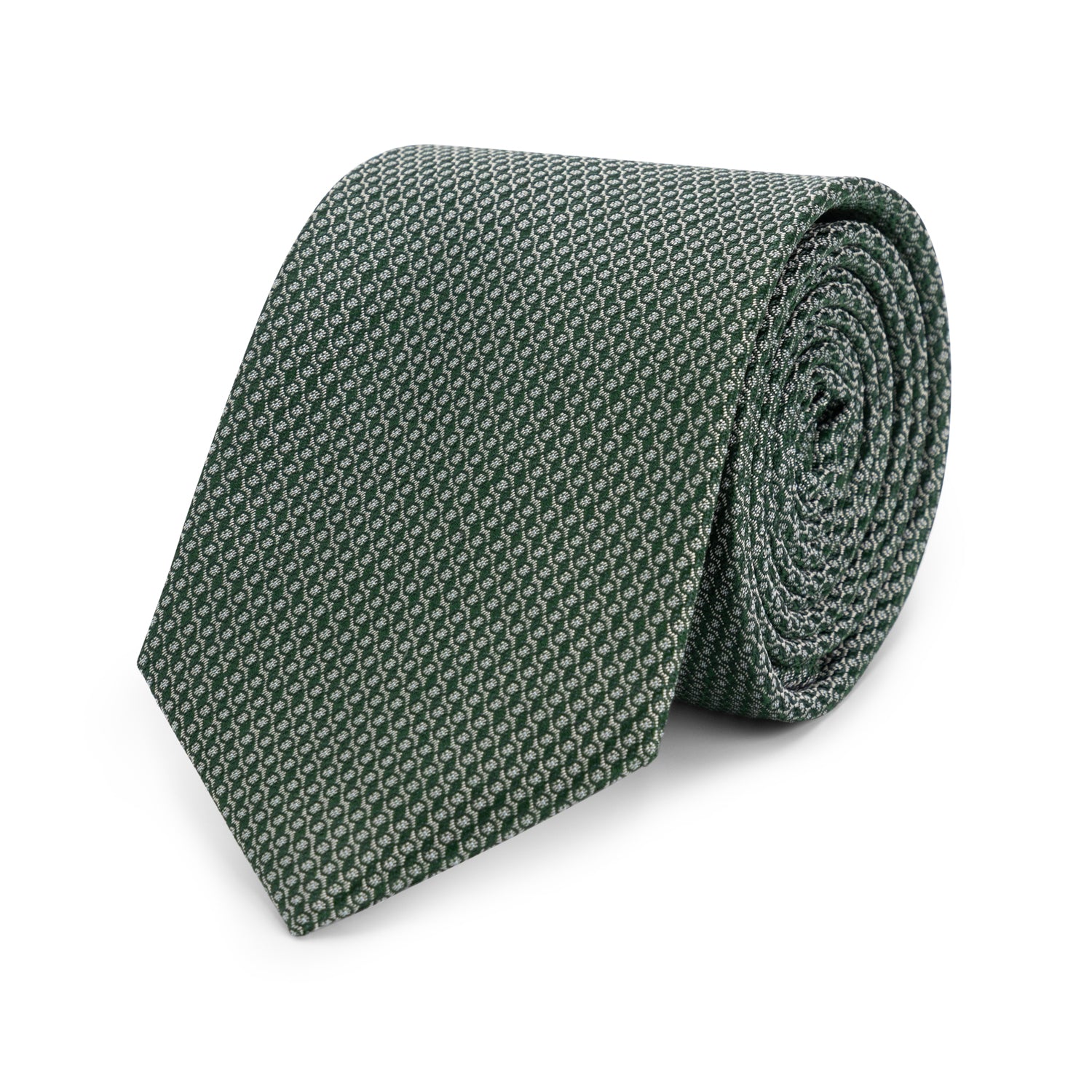 Deze stijlvolle zijden stropdas met groen streepmotief is een moderne klassieker die elke look verfijnt. De subtiele glans van de zijde en het strakke lijnenspel zorgen voor een elegante en verzorgde uitstraling. Perfect te combineren met een effen overhemd en een colbert in blauw, grijs of beige tinten.