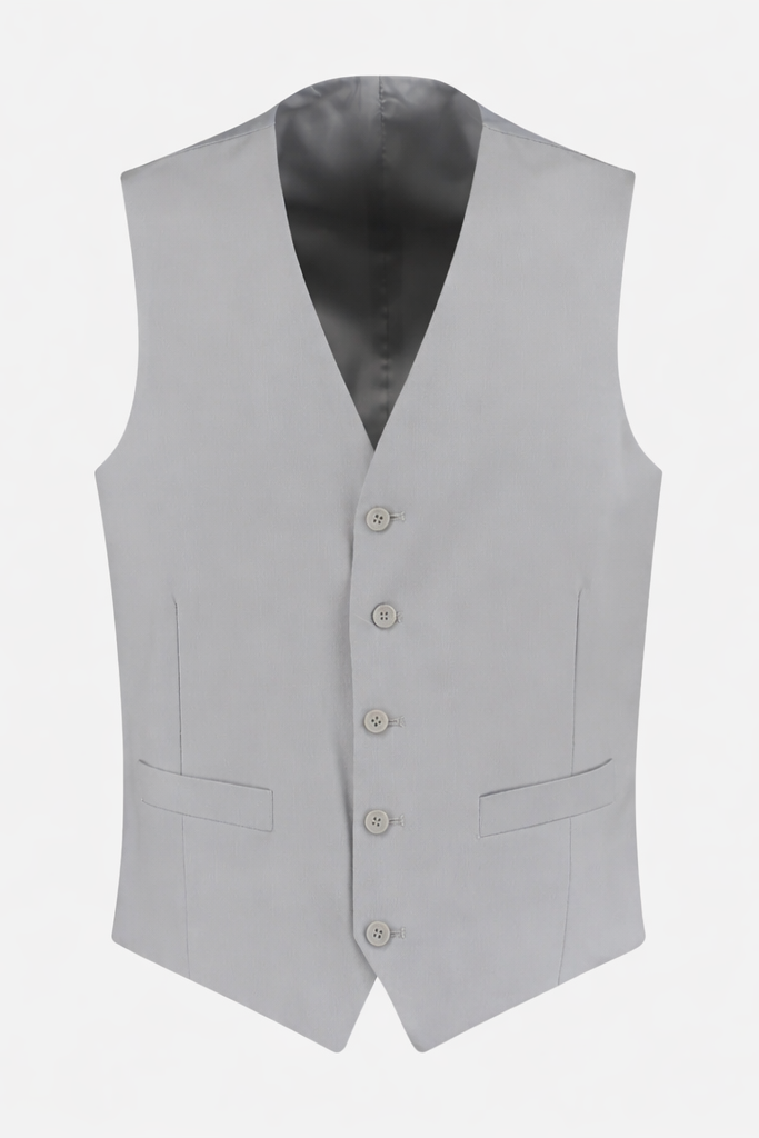 Dit grijze Jacquet-vest met knoopsluiting en kreukvrij ontwerp combineert een moderne pasvorm met Easycare-kenmerken voor dagelijks formeel gebruik, waardoor je er direct verzorgd uitziet zonder gedoe. De lichte, ademende polyester viscose elastan-mix biedt comfort gedurende de hele dag en laat zich moeiteloos combineren met een wit overhemd of een colbert voor een nette, professionele uitstraling.